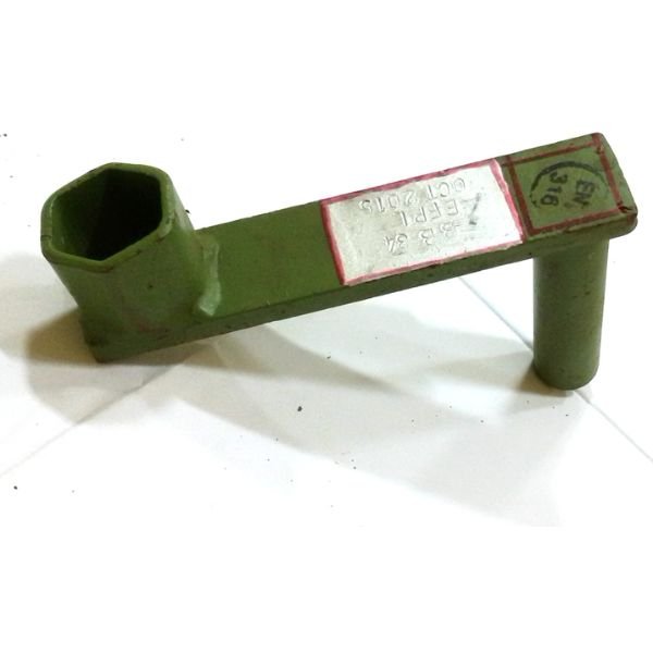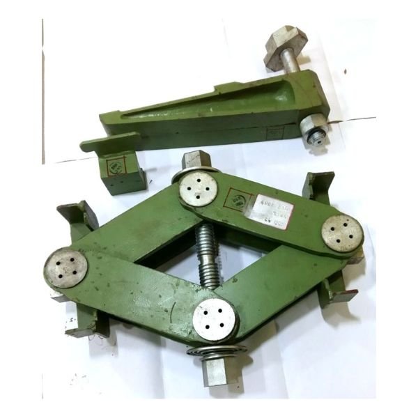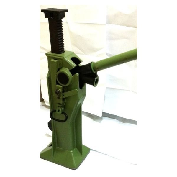 It is a 15 MT capacity Ratchet type Mechanical Jack with additional Toe‐lifting arrangement. It is used for raising or lowering the bridge ends. It lifts 15 MT on Head and 7.5 MT on Toe. The Toe height is such that it can be positioned under the tip of the Male / Female End Posts